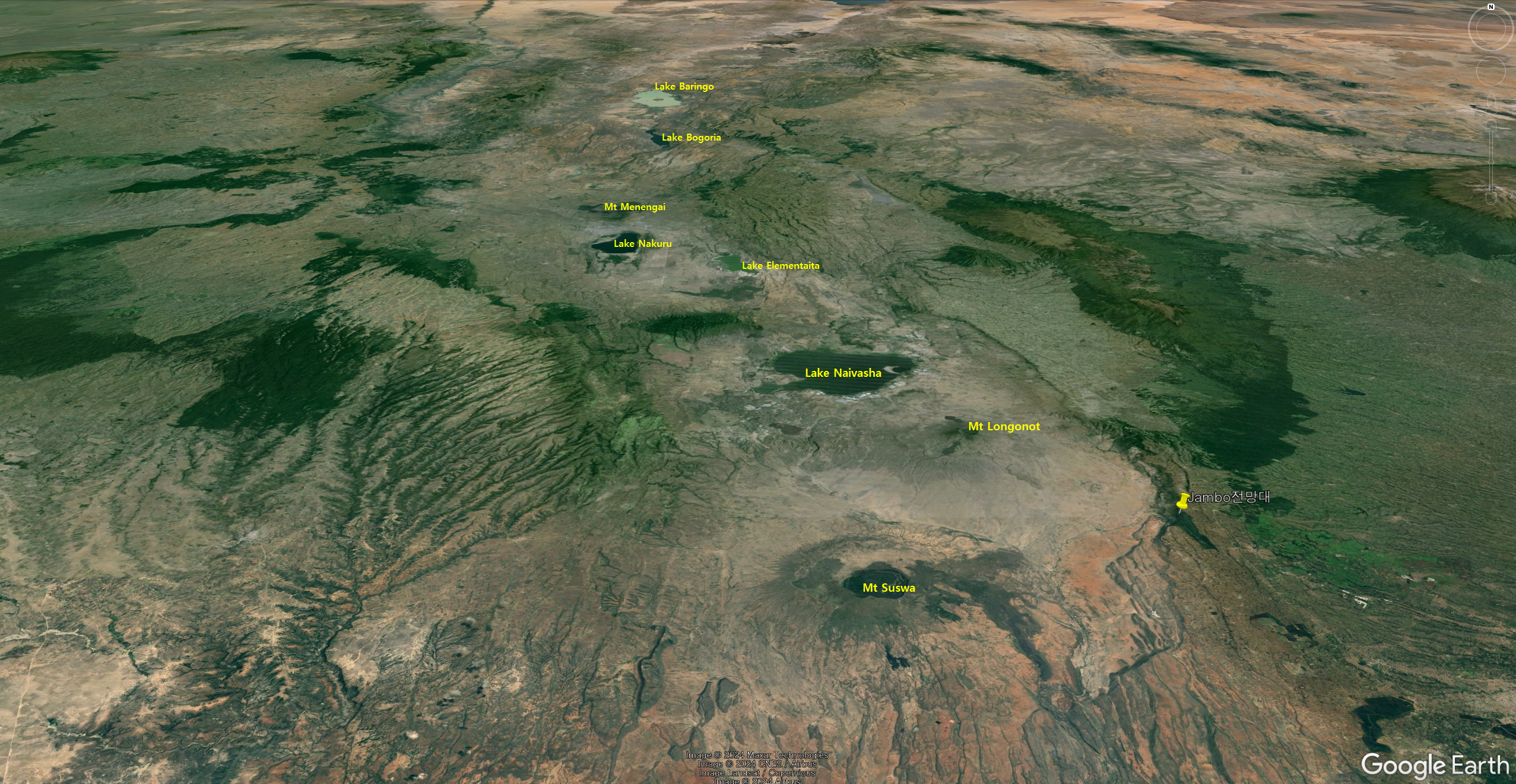 아래 사진은 케냐 나이로비 동북쪽 40km쯤에 있는 키암부(Kiambu)주의 '잠보(Jambo)대열곡 전망대'이다. 대열곡에서 가장 큰 호수인 빅토리아호에서 약270km 동쪽에 있다.